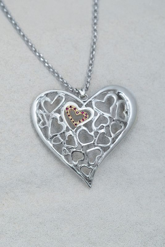 I piccoli cuori in argento 925 rappresentano la vita con le sue infinite possibilità, quel movimento continuo che ci circonda ogni giorno. Al centro, il cuore in oro giallo con 14 rubini incastonati è quella meravigliosa eccezione: l'unico che conta davvero, quello che ha scelto te.